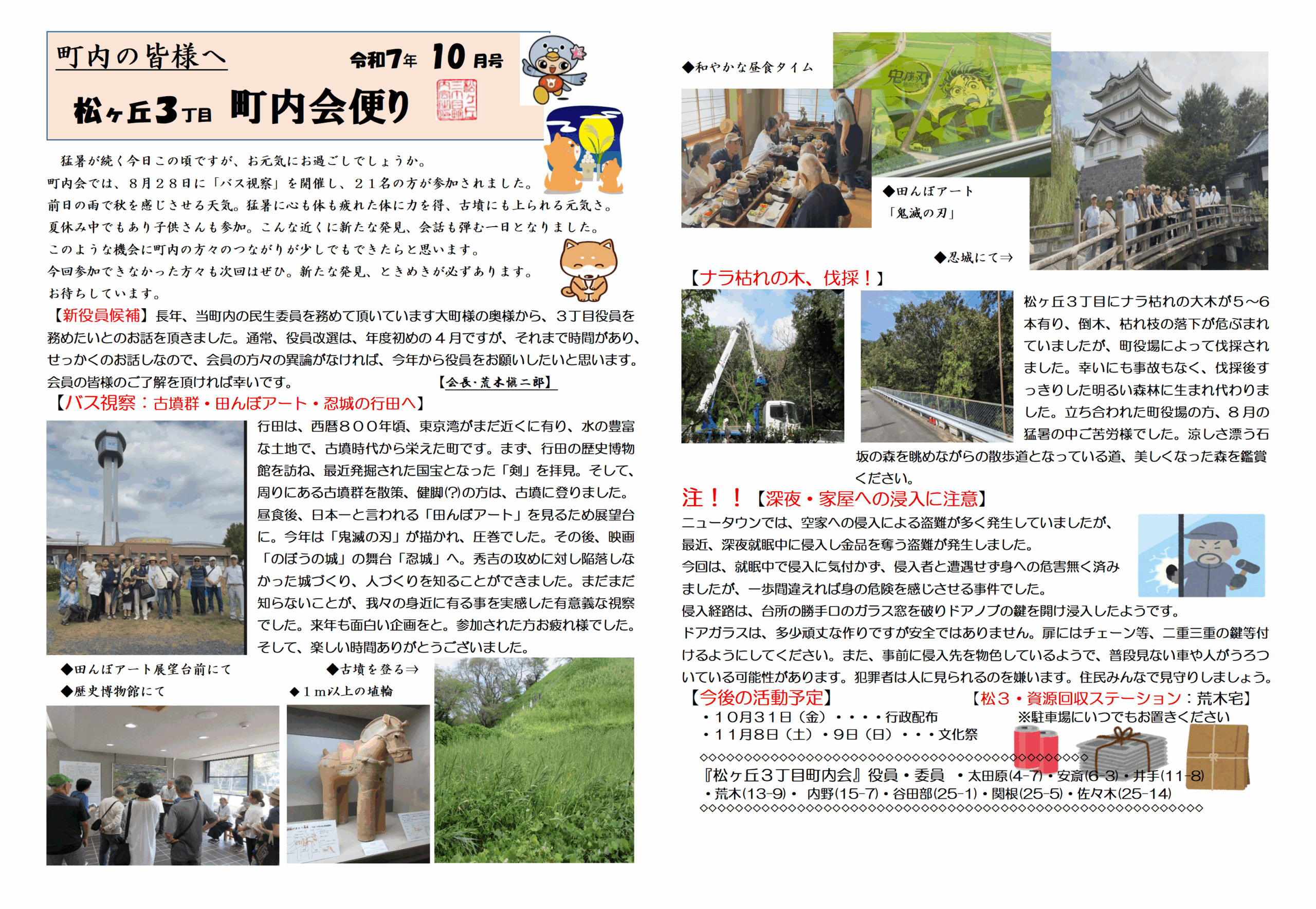 なお、町内の方々にお知らせしたい情報や楽しい話題等ありましたらお寄せください。町内の方々で力を合わせ、町内の様々な課題や問題の解決に努めながら楽しく過ごしたいですね。このページがその一助となれば幸いです。